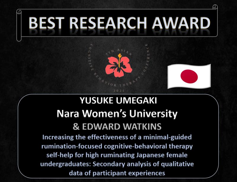 This award is given to an early career CBT practitioner or researcher (aged below 40) in recognition of unique and significant contributions to the advancement of CBT related to the conference theme. The aim of this Award is to inspire excellence in CBT practice and research in early career professionals towards further developments in the field. Any registered participant may apply for this award regardless of presenting any paper.